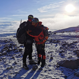 Ahora bien el nivel de satisfaccion de ver a Fede continuar su ascenso segun el guia esta excelente el ritmo, y el tiempo, no sabiamos que a las 10 a.m segun protocolos de seguridad lo bajan a uno este donde este , lo interesante es que mi hijo Fede iba de lo mas bien y logro subir por el glaciar hasta un punto cercano a la roca del crater. Para ese entonces Ale y mi persona contemplabamos la magnitud de la belleza casi anonadados por ese lugar que lo llame Casi Casi el Cielo.
