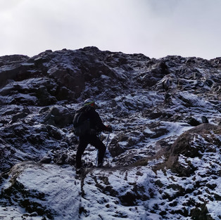 La subida por el sendero solo se percibe por el chasquido de los bastones ya que sus puntas son de metal y al chocar con las piedras suenas como los cascos de los caballos, la noche es helada y se divisa alo lejos los caserios ademas de la salida de la Luna siendo un cacho que refleja su luz para iluminar a lo lejos las montanas, son las 4 p.m y ya el frio cala las manos,los pies y en mi caso la garganta ya que respiro por la boca para que me llegue mas cantidad de aire a los pulmones, aqui ya estamos en el nido #2 a 4700 msnm , hacemos parada tecnica, algunos comen y otros comenzamos a sentir la incomodidad de un dolorcito de cabeza al lado izquierdo, a lo que los guias nos indican que debemos de consumir mas agua y comer algun alimento con azucar para adrnos mas energia, ya llevamos 3 horas de caminar a un paso muy despacio siendo lo recomendado por los guias. Ya para esos momentos solicitan hacer switch y pasan a Fede para atras y a mi me dejan adelante, en esos momentos comprendo que el guia que va a delante marca el paso de acuerdo al ritmo que establece el que va adelante, es decir, Fede a marcado el paso durante 3 horas y ahora me toca a mi, eso no significa ni bueno ni malo , es un relevo para trabajar en equipo. Al cabo de una hora y media, es decir, las 5,30 a.m Oscar le sugiere a Ricardo cambiar la estrategia y dividir el grupo en dos , donde Fede se va a ir con el y Ale y mi persona continaran con Ricardo ya que hemos bajado mucho el ritmo y eso puede perjudicar a Federico que va con un muy buen paso. Ya para esos momentos Alejandro y mi persona nos a entrado en M.A.M , mal agudo de montana, en mi caso dolor de cabeza y mareo ( un desequilibrio) que me incomoda con cada paso que doy , y Alejandro dolor de cabeza y ganas de vomitar, estamos cruzando el Laberinto un lugar fenomenal lleno de rocas negras (ya esta amaneciendo) hay claridad poca a esto en el campo se llama la amanezca, ya vamos caminando con una tecnica contando uno pausa uno y asi se daran los pasos, la velocidad es minima el esfuerzo es enorme , ya la altitud ronda los 5.000 msnm la inclinacion del terreno no a disminuido aproximadamente 4o grados , ahi nieve, hielo, rocas, arenas y en muchisimos casos levantar las rodillas hasta la cintura para subir rocas y continuar le camino.
